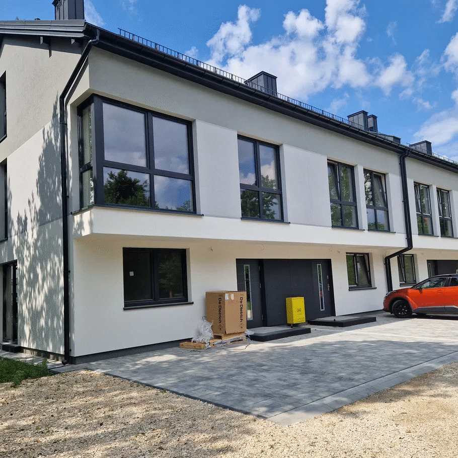Każdy dom to nowoczesny segment w zabudowie bliźniaczej, zaprojektowany z myślą o wysokim standardzie, energooszczędności i funkcjonalnym układzie pomieszczeń. Obiekt wyposażony jest w instalację inteligentnego domu, zaawansowaną elektrykę oraz przygotowane przyłącza pod fotowoltaikę i pompę ciepła.